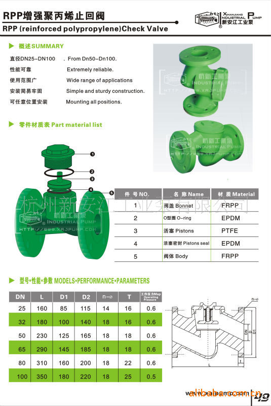 RPP增强聚丙烯止回阀(DN25 DN32 DN50 DN65)
