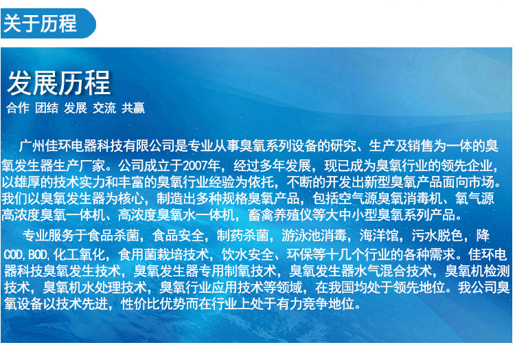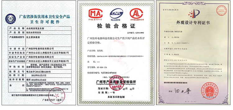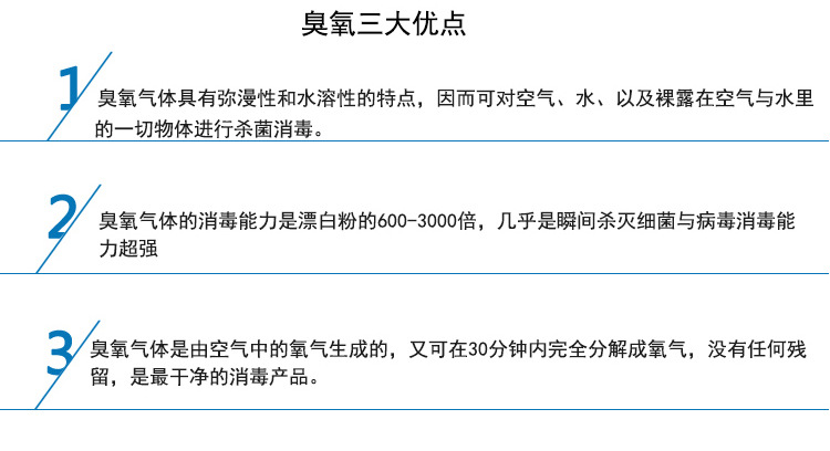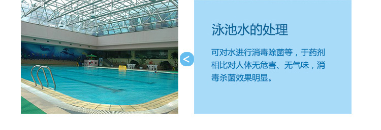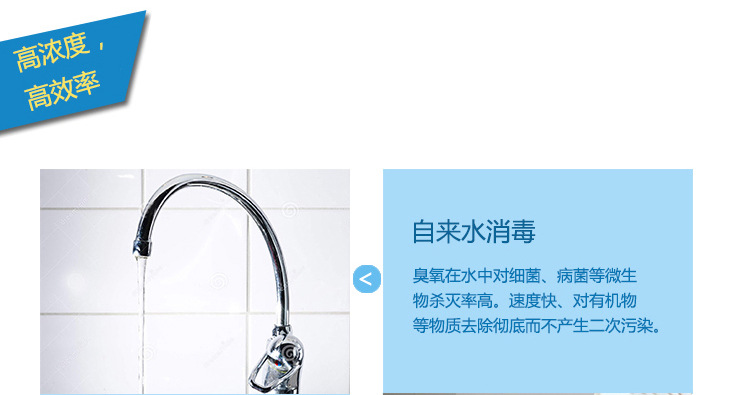 高压达到一定程度以后空气被击穿,空气中的分子被电离。其中的氧气分子被电离后产生由三个氧原子结合而成的臭氧分子。所以一般人们也把臭氧发生器称为“负氧离子发生器”。 选型: 1.按高压电频率划分,有工频(50-60Hz)、中频(400-1000Hz)和高频(>1000Hz)三种。工频发生器由于体积大、功耗高等缺点,目前已基本退出市场。中、高频具有体积小、功耗低、臭氧产量大等优点,是现在***常用的产品。 2.按使用的气体原料划分,有氧气型和空气型两种。氧气型通常是由氧气瓶或制氧机供应氧气。空气型通常是使用空气(如压缩空气)作为原料。由于臭氧是靠氧气来产生的,而空气中氧气的含量只有21%,所以空气型发生器产生的臭氧浓度比氧气型稍低。而瓶装或制氧机的氧气纯度都在90%以上,所以氧气型发生器的臭氧浓度较高。在环境消毒时,通常使用空气型发生器。在水处理时,应优先考虑氧气型发生器。但如果消毒饮用水时,发生器需要配合旧式臭氧混合塔使用,则只能选用空气型。 3.按冷却方式划分,有水冷型臭氧发生器和风冷型臭氧发生器。工作时会产生大量的热能,需要冷却,否则臭氧会因高温而边产生边分解。水冷型发生器冷却效果好,工作稳定,臭氧无衰减,并能长时间连续工作,但结构复杂,成本高。风冷型冷却效果不够理想,臭氧衰减明显。大型臭氧发生器或重要场所使用的发生器通常都是水冷式的。风冷一般只用于臭氧产量较小的发生器或对发生器性能要求不严格的场所。在选用时,应尽量选用水冷型的。 4、按介电材料划分,常见的有石英管臭氧发生器、陶瓷板臭氧发生器、陶瓷管臭氧发生器、玻璃管臭氧发生器和搪瓷管臭氧发生器等几种类型。其中石英管由于具有介电常数高、壁厚均匀、椭圆度好、耐高温、耐潮湿等特点而***常被一些高性能的臭氧发生器使用。陶瓷板易脆裂,只适用一些小型发生器。陶瓷管的壁厚和椭圆度不易控制,容易出现放电不均匀的问题,所以使用的不多。玻璃管和搪瓷管介电常数低,耐高温性能差,易炸裂,只有在一些低端发生器上使用. 5、按臭氧产生部件的结构划分,有密闭式和开放式两种。密闭式发生器的结构特点是密封体本身就是电极,臭氧能够集中使用,如用于水处理。开放式发生器的电极是裸露在空气中的,所产生的臭氧无法集中使用,通常只用于较小空间的空气净化或某些小型物品表面消毒。密闭式发生器可代替开放式发生器使用。密闭式发生器的成本远高于开放式发生器。值得注意的是,现在有些人把开放式发生器硬性封装起来,冒充密闭式发生器。这样做的结果是由于大量的热量无法及时散发,臭氧衰减严重,发生器也很快烧损。 主要用途:臭氧发生器主要用于医药水、纯净水、矿泉水、二次供水、游泳池水、养殖水体、食品饮料等行业用水消毒净化处理,还有化工行业、造纸行业等脱脂、脱色、漂白,用于生活、工业、医院污水排放达标处理(杀菌消毒、去除BDR、COD等),以及生活污水、工业冷却水回用处理等。
