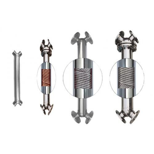 螺旋螺纹管式换热器换热器由芯体和壳体两部分组成,芯体主要由换热管组成,壳体由筒体和封头等组成,上下封头各设两个开口,同一封头上的开口中心呈90°角,使换热器全部参与换热,无死区。