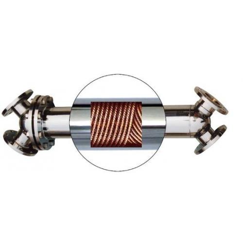 (一)热效率高,更加节省能量(蒸汽):内部独特的反向缠绕、螺旋上升的盘管结构,以逆流方式换热,使蒸汽在换热管束中得以充分冷凝,无须经过二次换热,故可以节省大量蒸汽;