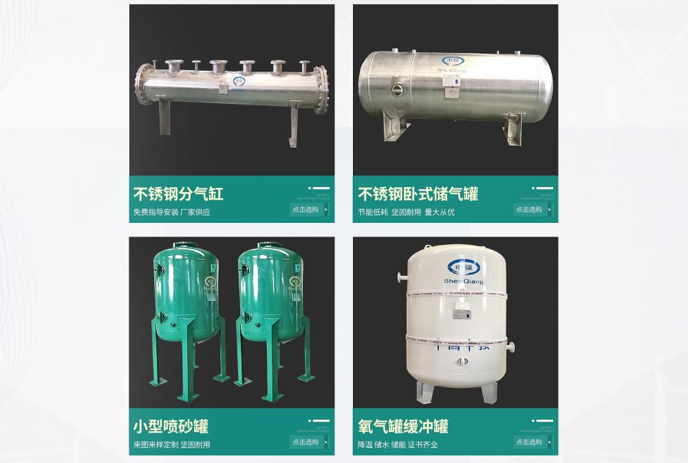 江苏申强特种设备有限公司自创建以来,遵循以人为本,科技为先的发展理念,组建了一支高智科技队伍,研发了一批具有国家技术的产品形成了一百多个规格系列的储气罐,兼各种非标压力容器:磨料桶、反应容器、过滤器、分离器、换热器、消声器、分汽缸、油罐、水槽等设计、制造。