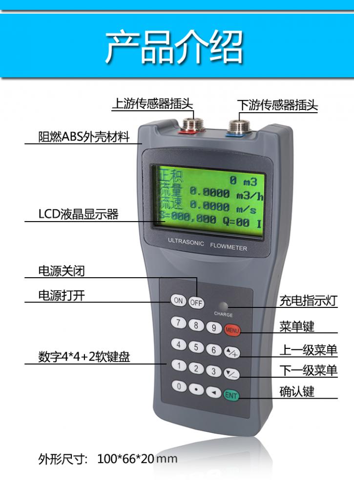 1、手持式超声波流量计适用于各种工业现场中液体流量的在线标定和巡检测量。