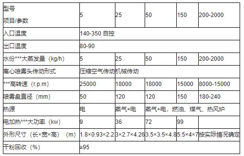 1 干燥速度快、料液经雾化后表面积大大增加、在热风气流中,瞬间就可蒸发95%—98%的水份。完成干燥时间只需5-15秒,具有瞬时干燥特点.