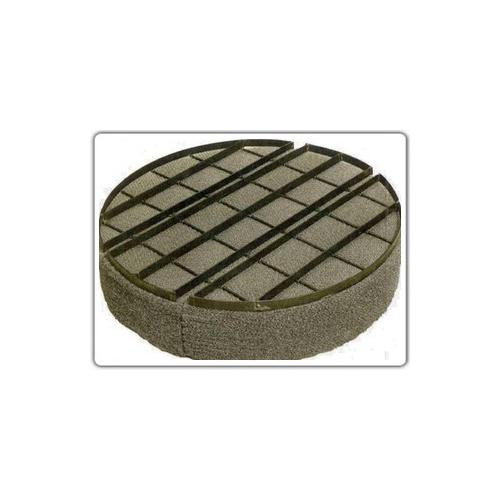 丝网除沫器主要是由丝网、丝网格栅组成丝网块和固定丝网块的支承装置构成,丝网为各种材质的气液过滤网,气液过滤网是由金属丝或非金属丝组成。气液过滤网的非属丝由多股非金属纤维捻制而成,亦可为单股非金属丝。该丝网除沫器不但能滤除悬浮于气流中的较大液沫,而且能滤除较小和微小液沫,广泛应用于化工、石油、塔器制造、压力容器等行业中的气液分离装置中