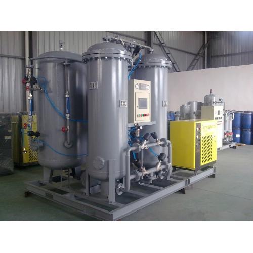 制氮机是根据变压吸附原理,首先由空压机将空气经压缩机压缩至所需压力进入空气储罐,使空气压力变化比较平稳缓解成静压力,经空气储罐除去压缩空气中的大量液态水和油,再经由空气处理系统冷干机,四级过滤除去压缩空气中的水、油、粉尘,将原料空气变成为洁净而稳定的压缩空气,再经过PSA变压吸附制氮装置,生产出99.5%以上纯度氮气。采用高品制质的碳分子筛作为吸附剂,在一定的力学效应,氧在碳分子筛微孔中扩散速率远大于氮,在吸附未达到平衡时,氮在气相中被富集起来,形成成品氮气。然后减压至常压,吸附剂脱附所吸附的氧气等其它杂质,实现再生。一般在系统中设置两个吸附塔,一塔吸附产氮,另一塔脱附再生,通过PLC程序自动控制,使两塔交替循环工作,以实现连续生产高品质氮气之目的。压力下,经过净化干燥的压缩空气,在吸附器中进行加压吸附、减压脱附。